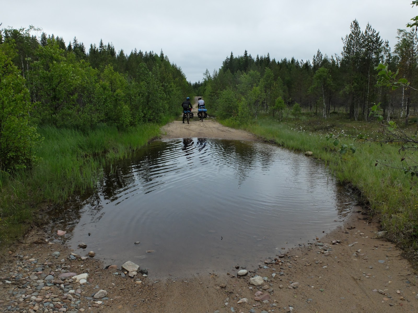 Где-то на этом участке между озёрами Шапшозеро и Кипи видим свежие следы медведицы с медвежонком. Юра объявляет: "Вот теперь становится действительно стрёмно!" Безмолвно соглашаюсь, прибавляем скорости и быстро проносимся до первого моста на маршруте.